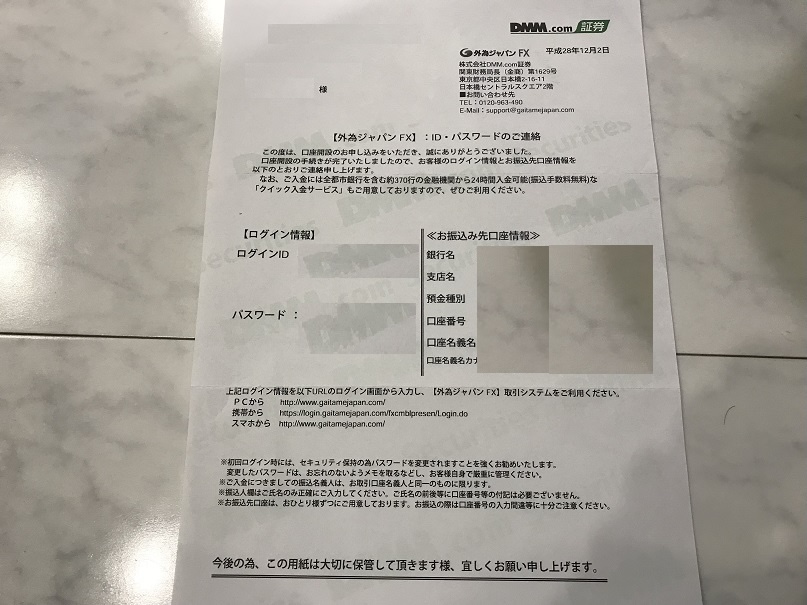 数日後、ログインIDとパスワードが記載された登録用紙が届きます。これで登録は完了です。