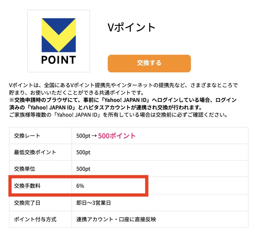 もちろん、ハピタスポイントをVポイントに直接交換することもできるのですが・・。