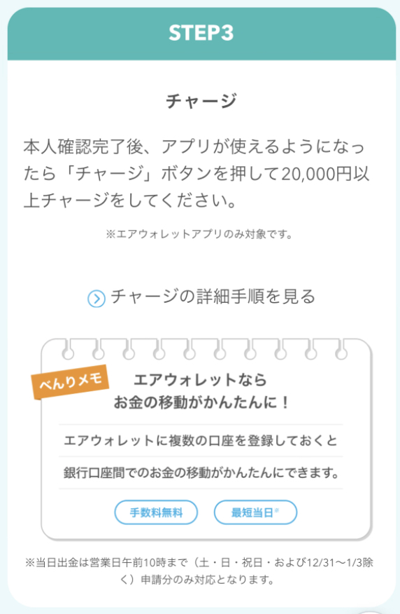 そして、冒頭に記載のとおりこのエアウォレットは銀行間の資金移動がなんと手数料0円という優れたサービスなので、持っておいて全く損はありません!!