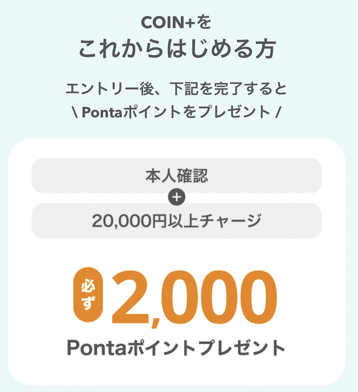 まずは上記のとおり、エントリーのうえエアウォレットに新規登録+本人確認+リクルートID連携+20,000円のチャージだけで2,000円分のPontaポイントがもらえます。