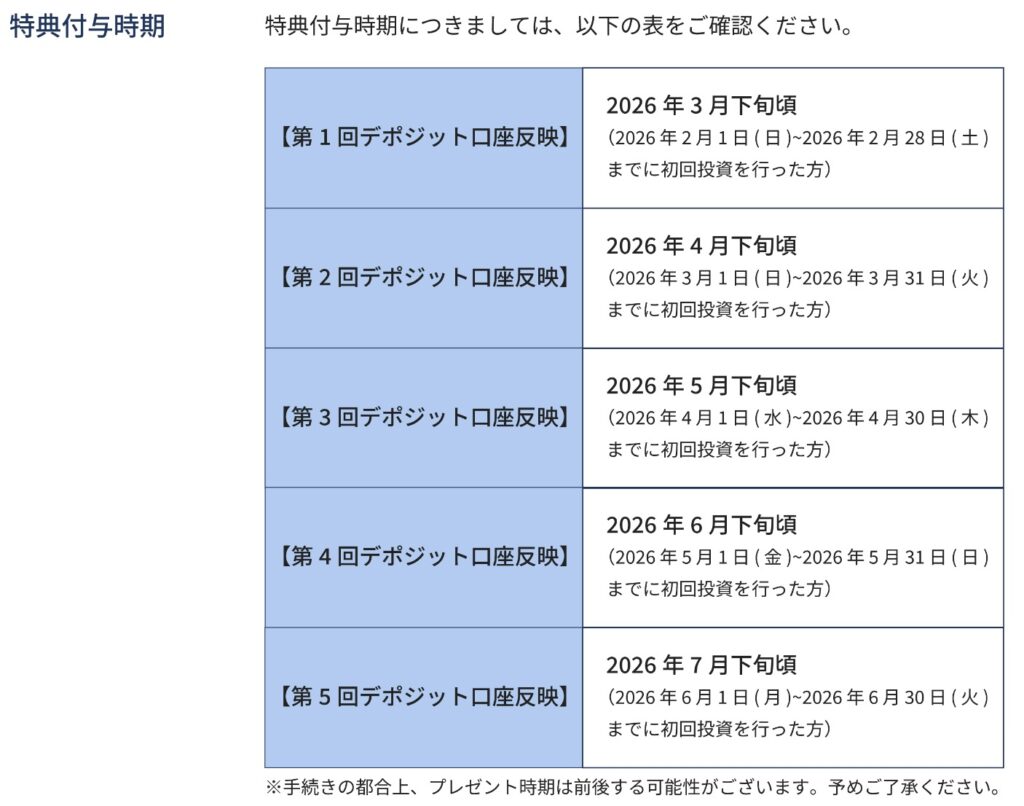 なお、現金は2025年12月中旬以降・・上記のタイミングでデポジット口座に反映されます。