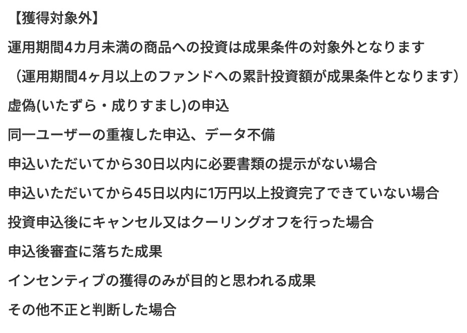 ただし、運用期間4ヶ月未満の商品への投資は対象外なので、その点だけはご注意を。