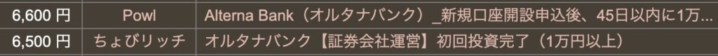 ポイントサイトのAlterna Bank案件がこちらですね。