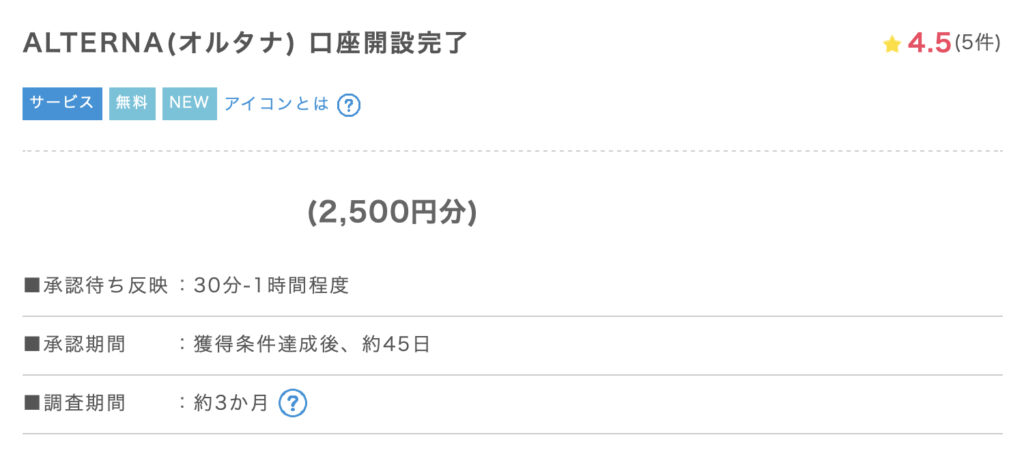 ポイントサイトでまさかの口座開設だけ案件に進化している「ALTERNA(オルタナ)」案件をご紹介しました。