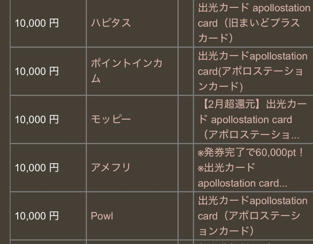 ご覧のとおり、ポイントサイト経由の出光一般カードの発券だけで・・10,000円分のポイントがもらえます。