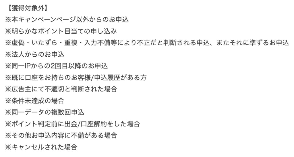 まず、ポイント獲得条件はご覧のとおり新規口座開設だけとなっています。