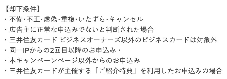 その他、三井住友カードの「紹介キャンペーン」の利用もNGなので、この点もご注意を。
