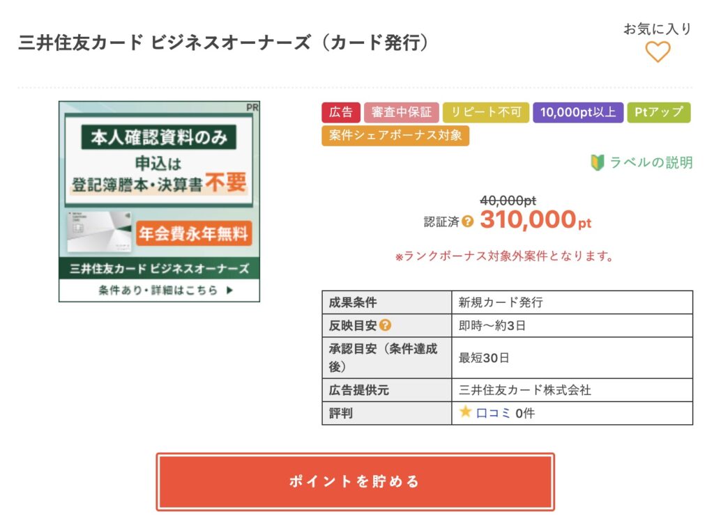 三井住友カードが発券するビジネスカード「三井住友ビジネスオーナーズ」が、ポイントサイトで超絶お得です!!