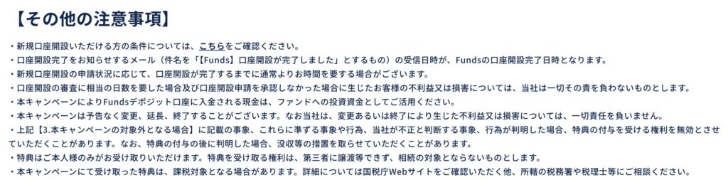 当然ながらFundsでの口座開設が初めてであることは条件となりますが・・20歳以上、75歳未満の方で、口座開設さえできればポイント獲得条件はまず満たすことが可能です。