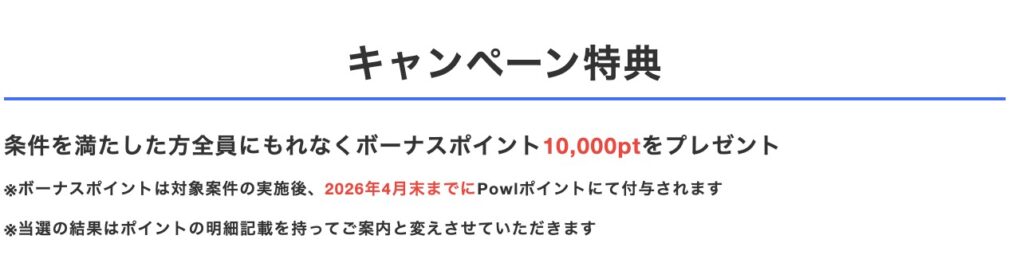 あ、キャンペーンポイントは2026年4月末までに別途Powlポイントにて付与されるのでご注意を。