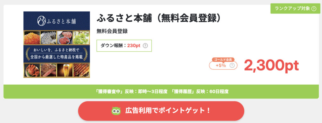 流石に衝撃的に登録が簡単すぎるので、ご紹介するのが、こちら「ふるさと本舗」案件です。