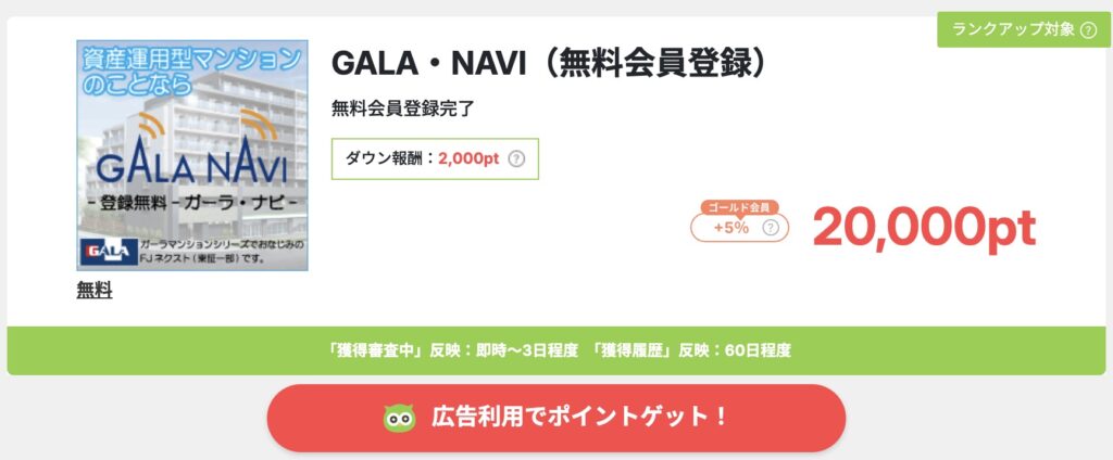 資産運用型マンションに関する情報発信サイト「GALA・NAVI」ポイ活案件のことは・・。