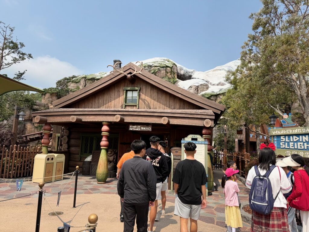 こちら、最新のアトラクションである「フローズン・エバー・アフター」に搭乗するためですね。