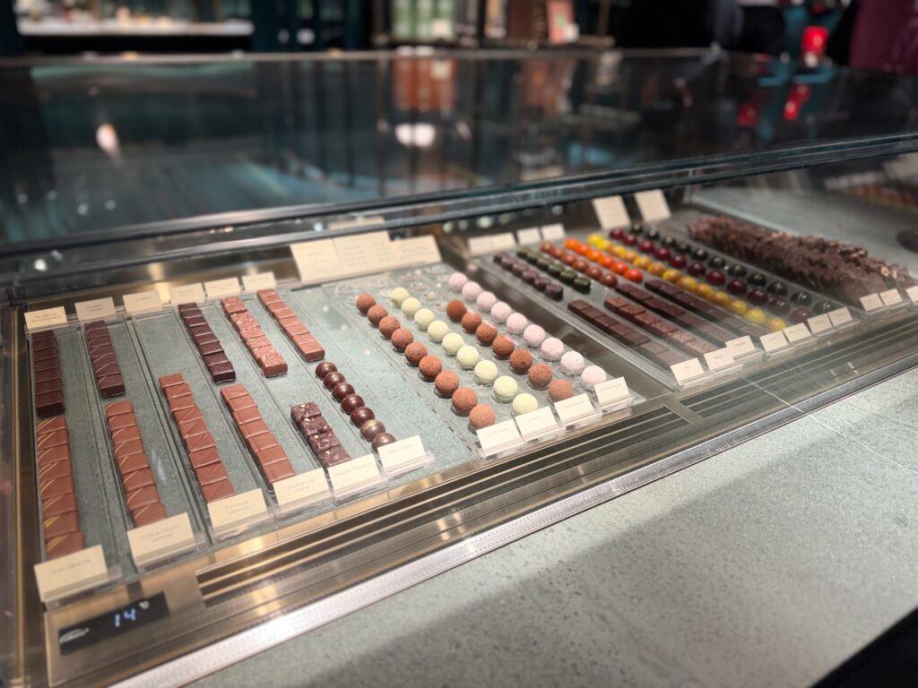 目にも鮮やかなチョコが陳列されているので・・。