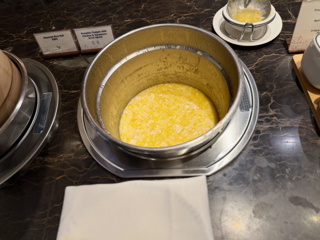この日はかぼちゃのコンジーです。日本のお粥とは若干テイストが違いますが、これはこれで美味しいです。