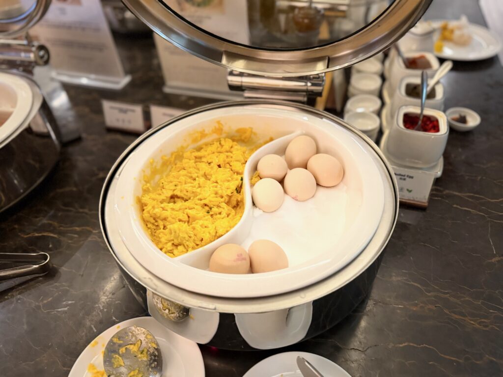 この日は、スクランブルエッグと、ゆで卵でしたね。