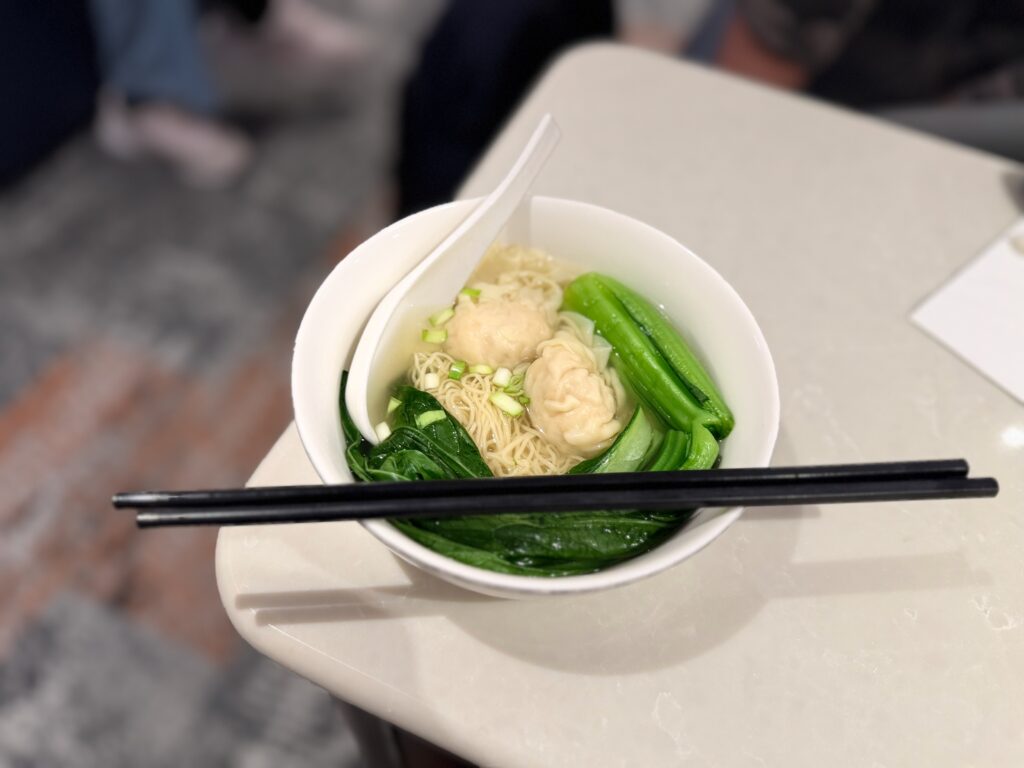 ラクサも好きなんですが、朝はさっぱりワンタンメンかと。