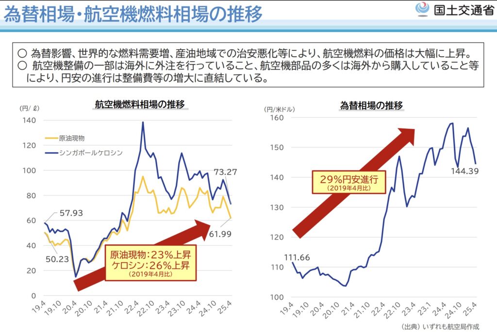 さらに、航空機の整備は一部海外に外注していること、部品は海外製品!ってこともあり、円安の進行が整備費等の増額に直結しているんです。