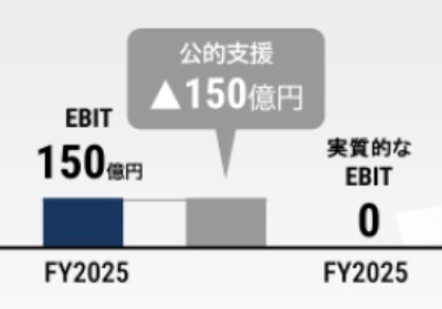 JALさんも、国内線のEBIT(利払い前の税引前当期利益)は、公的支援がなければ実質「0」と認めています。