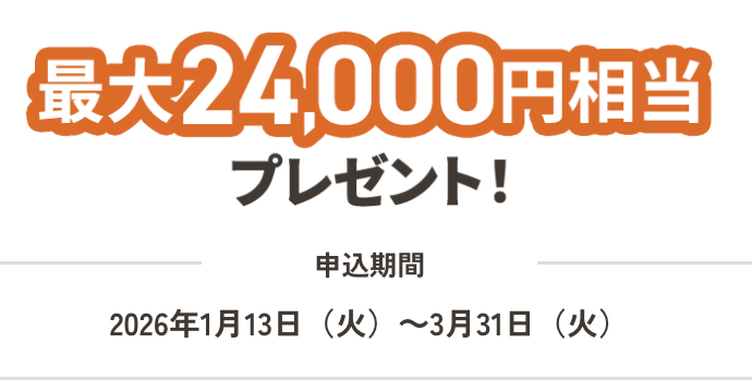 JCBカードSの公式入会キャンペーンでもらえる、最大24,000円のキャッシュバックです。