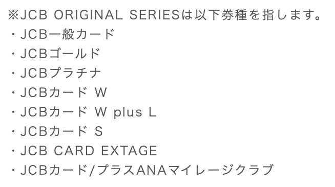これらのJCB ORIGINAL SERIESのカードを既にお持ちの方は対象外ですので、ご注意ください。
