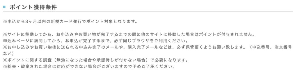 まず、ポイント獲得条件は「新規カード発行」だけですので・・繰り返しですが超絶お手軽案件です(笑)。