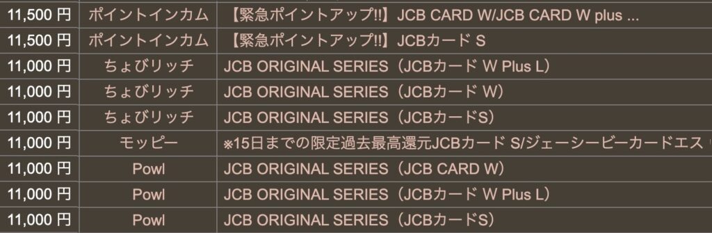 JCBカード案件でこの水準はなかなかないので、これは狙い目です!!