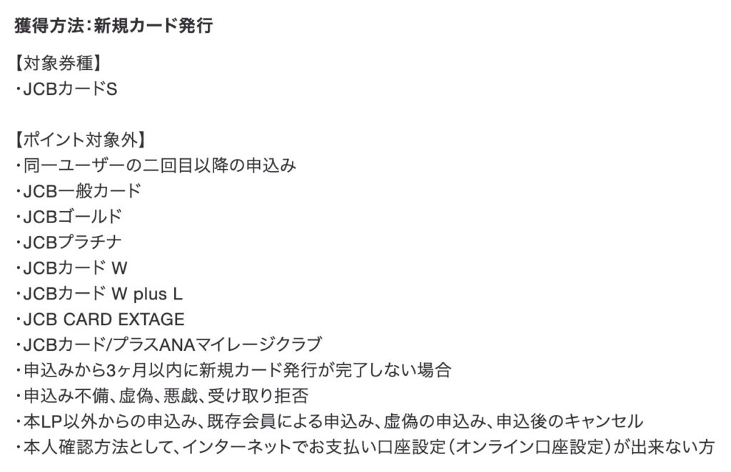 - JCB ORIGINAL SERIESを既に発行している方は対象外