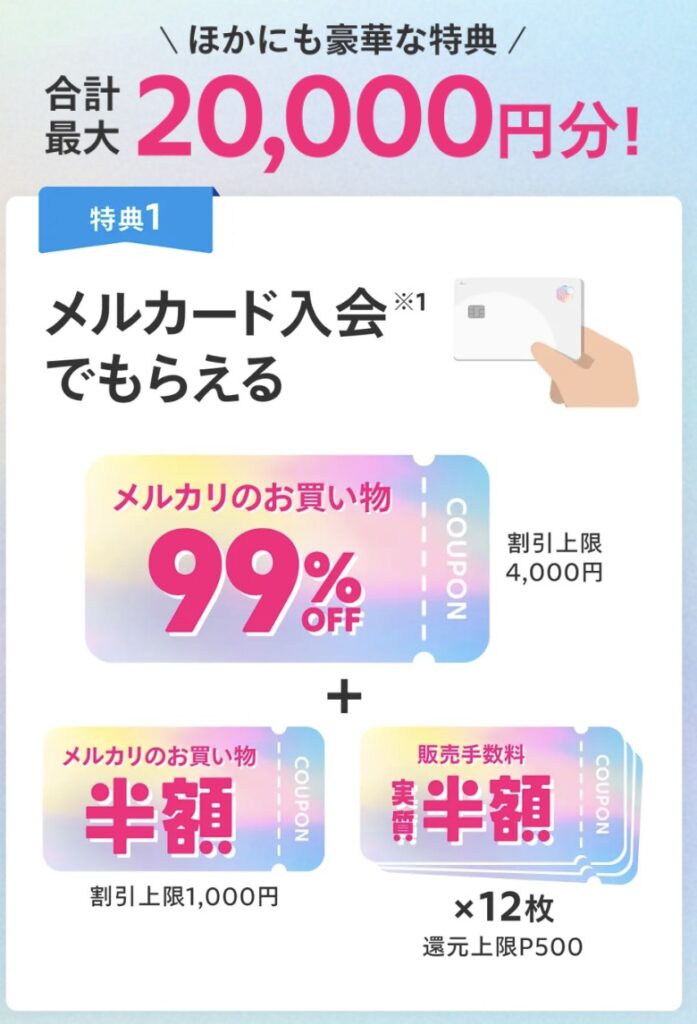 併用できるメルカリのキャンペーンがなかなか強烈でして、メルカリの利用等で、最大20,000円分の特典がもらえます。