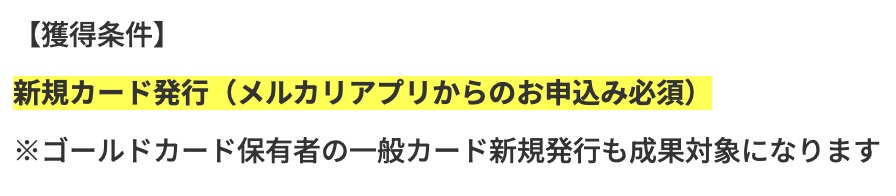 なお、新規でメルカリアプリをダウンロードした方も、すでにメルカリアプリをダウンロード済みの方も、メルカードの発券が初めてであればポイント対象です。