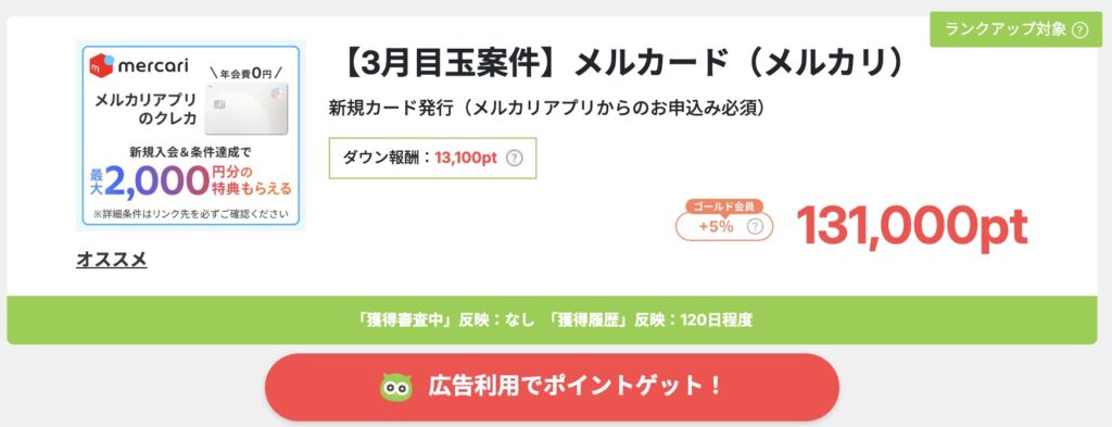 以上、かなりお得な「メルカード」案件をご紹介しました。