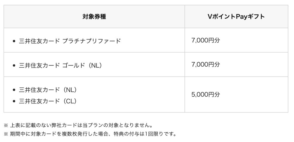 この三井住友カード(NL)一般カードやOliveフレキシブルペイ(クレジットモード)を発券したことがある方は、ほぼ対象外になっちゃいますね。