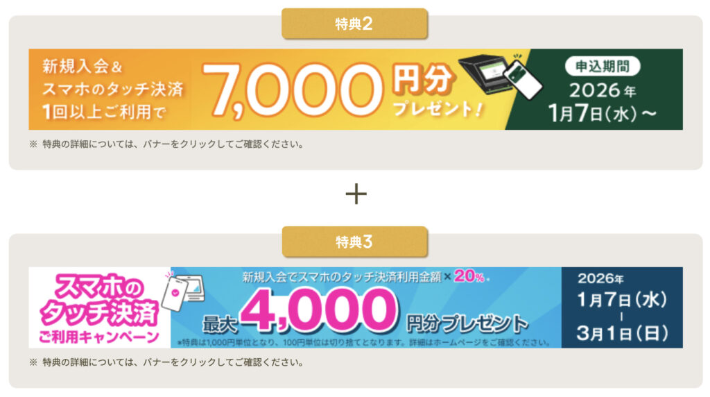 なお、利用条件は特典②と同じく、物理カードでタッチ決済はNGです。