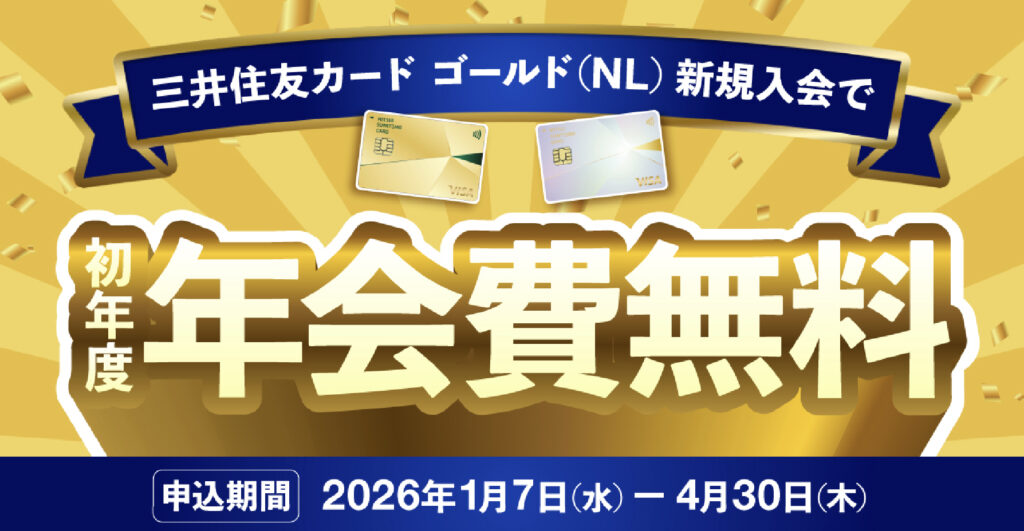 三井住友カードゴールド(NL)のポイントサイト案件が、初年度年会費無料キャンペーン実施中で久々にかなりお得です!!