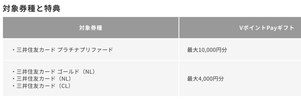 上記のとおり、この合計11,000円分のポイントもらえるキャンペーンは、2025年12月31日(水)時点で、三井住友カードが指定するカードを所有している方・・・。