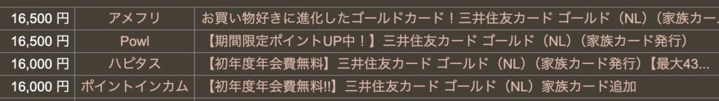必ず、三井住友カードゴールド(NL)案件を選ぶことをお忘れなく!!