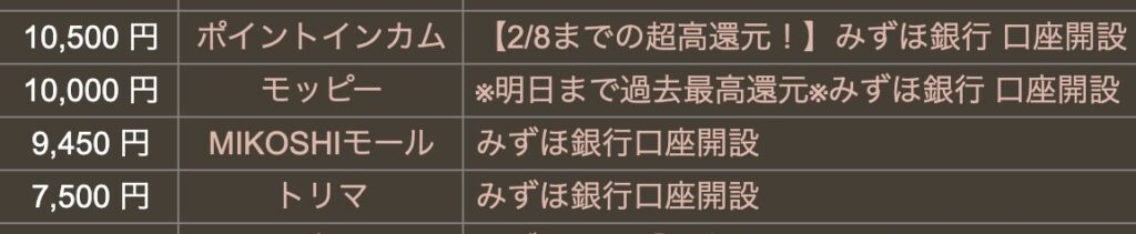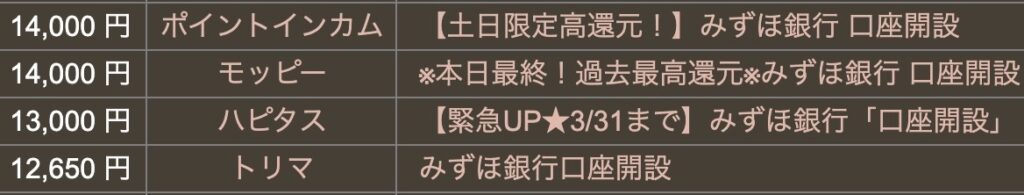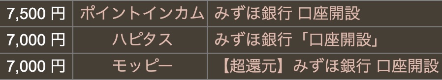 みずほ銀行さんの新規口座開設ポイントサイト案件が・・。