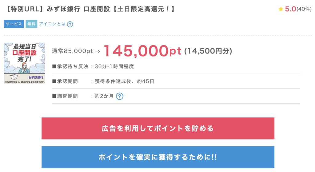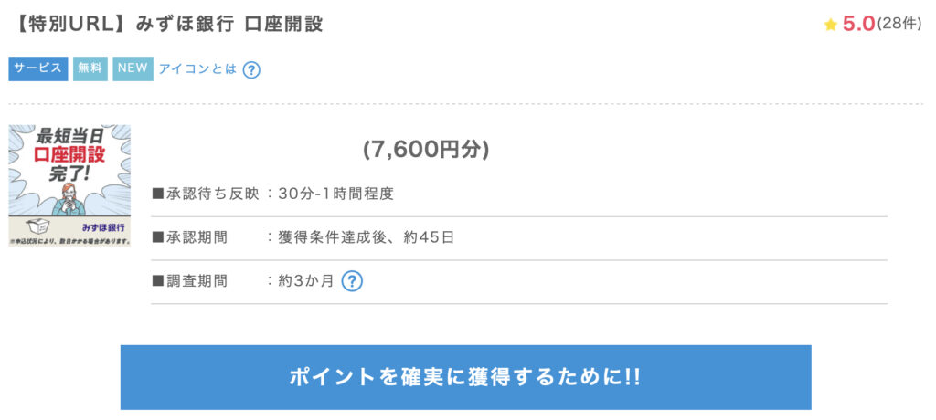 では、早速ポイントインカムさんのみずほ銀行新規口座開設案件をみていきましょう!!