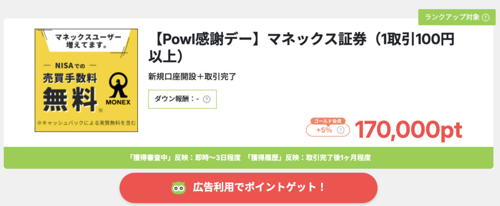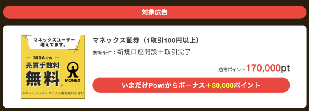 Powlさんに口座開設済みの方は、マネックス証券案件はこちらからご利用いただけます。