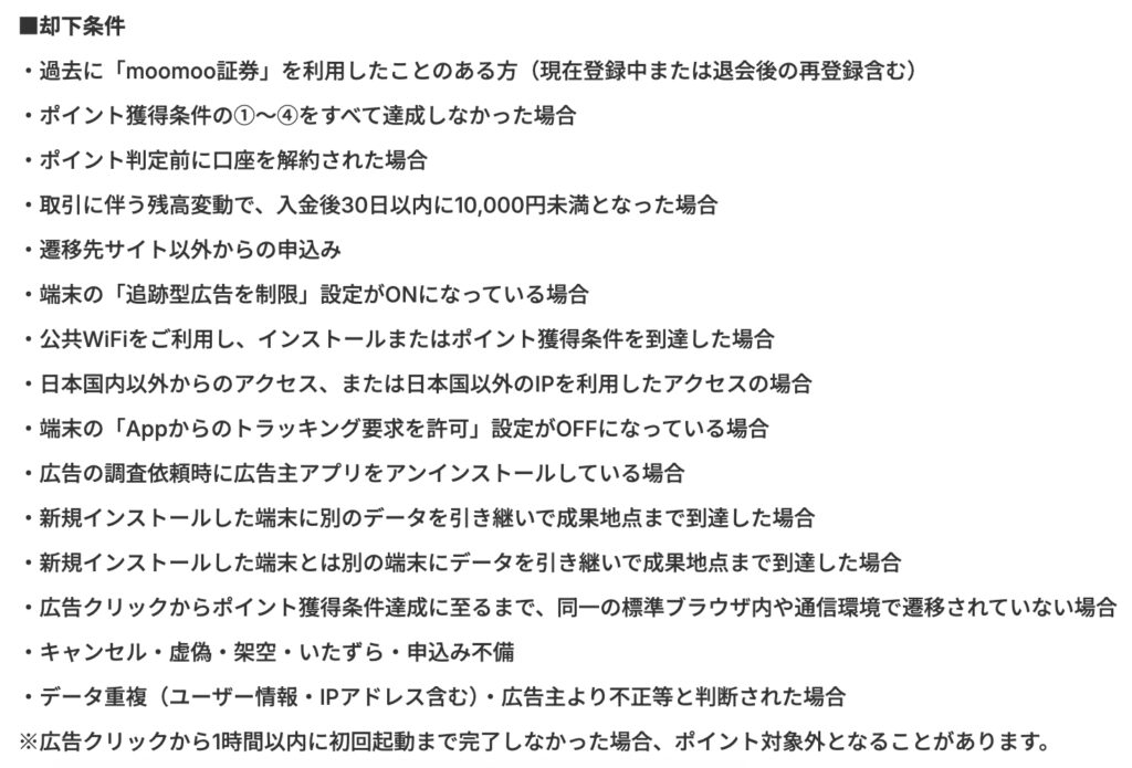 まず、過去「moomoo証券」と「moomoo証券アプリ」を利用したことが1度でもある方(再登録含む)は対象外です。
