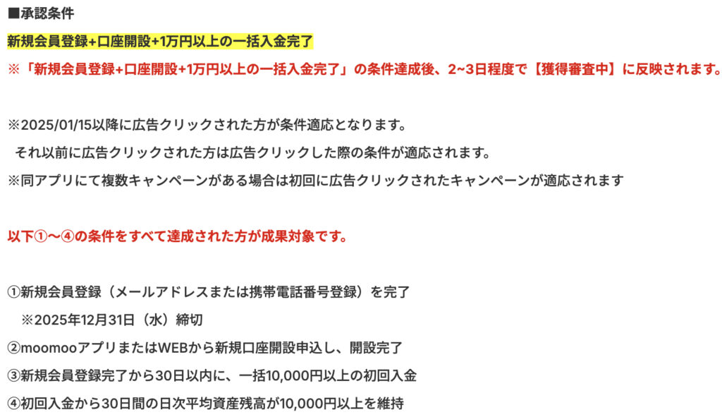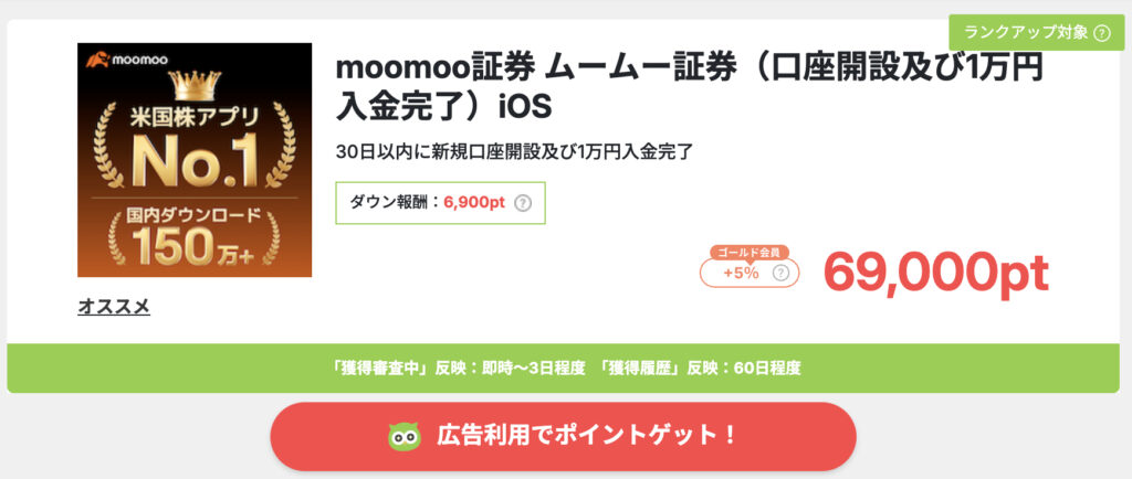 会員登録後「moomoo証券」で検索するか、こちらから案件をご利用いただけます。