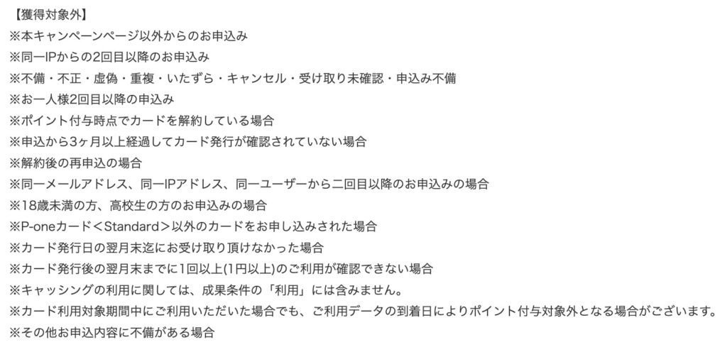 同じく、ポイント獲得対象外条件がこちらですが・・。