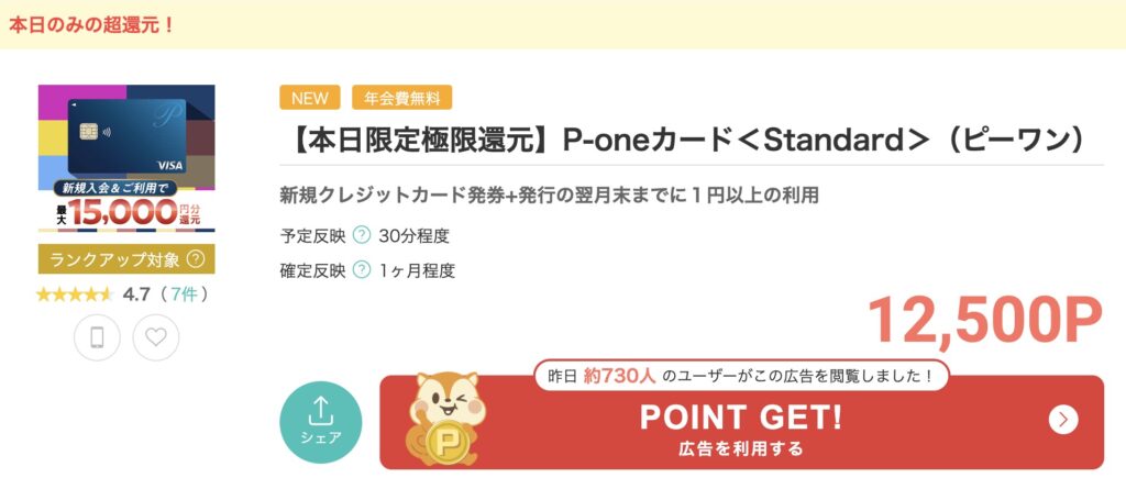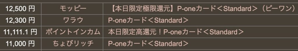 では、ポイントサイトのP-ONEカード案件をみていきましょう!こちらですね。