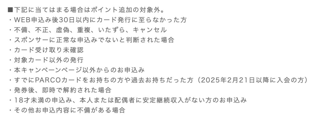 そして、ポイント却下条件がこちらのとおりですが・・。
