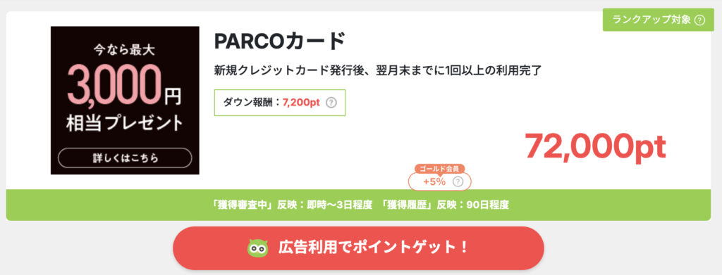 ポイントサイトの「PARCOカード」案件がこちらですね。