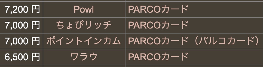 メジャーなクレジットカードである「PARCOカード」のポイントサイト案件が・・。