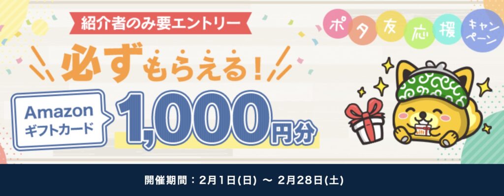 まず、ポイントインカムさんではポタ友応援キャンペーンを実施中ですので・・。