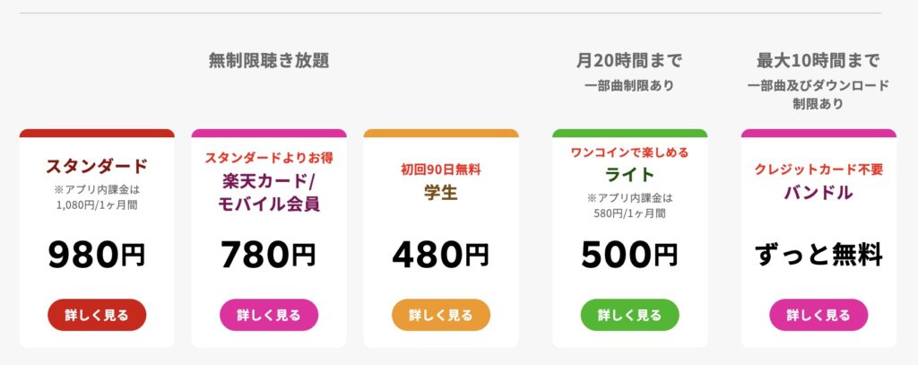 そして、楽天ミュージックの料金プランがこちらですが・・。