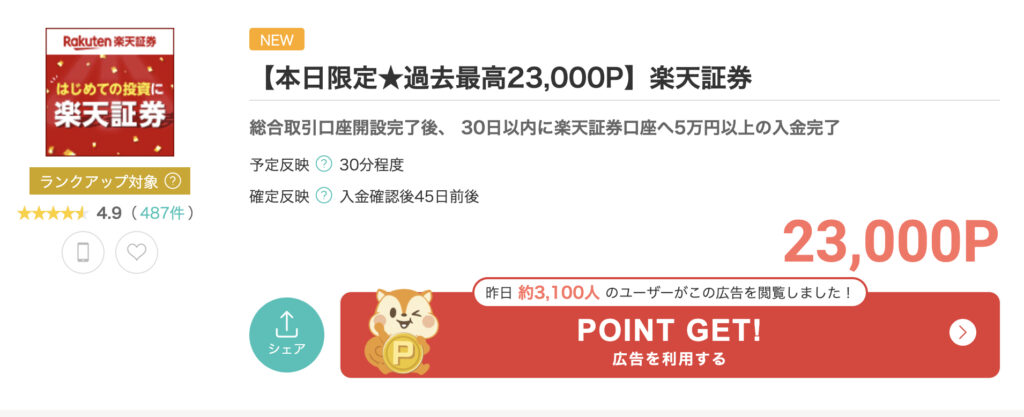 楽天証券の口座開設&入金案件が、ポイントサイトで激ヤバ水準です!