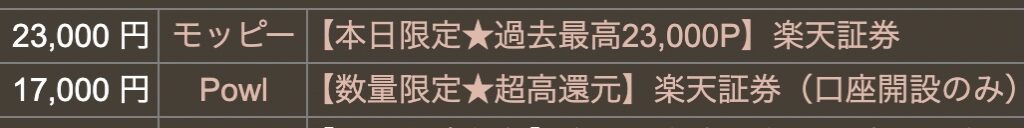 以上、ここにきて超絶お得水準に高騰している「楽天証券」案件をご紹介しました。